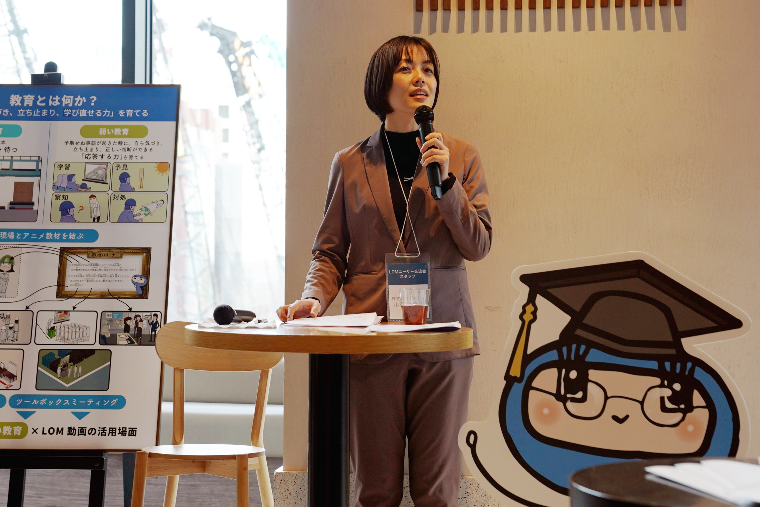 今回実施したユーザー会では、業界や企業規模の異なる 4 社の活用事例をパネル形式で紹介しました。参加者は各社の取り組みや現場での工夫に触れながら、自社の課題や活用のヒントを得る機会となりました。また、当日は食事を囲み、円卓ごとに交流会を実施。安全労働を主なテーマに、日常の運用で感じている課題や取り組みについて、業種を超えた意見交換が行われ、参加者同士の活発な対話が生まれました。